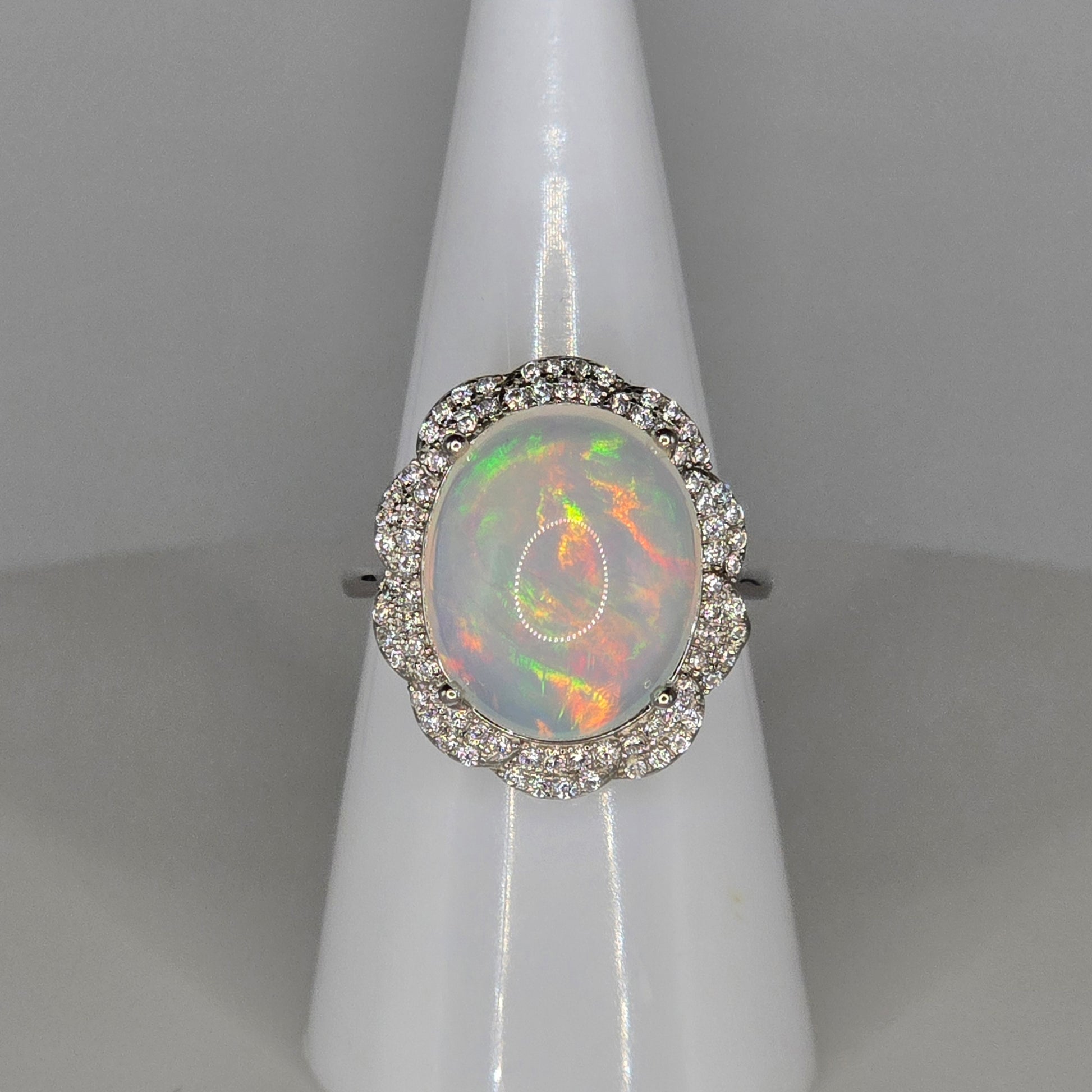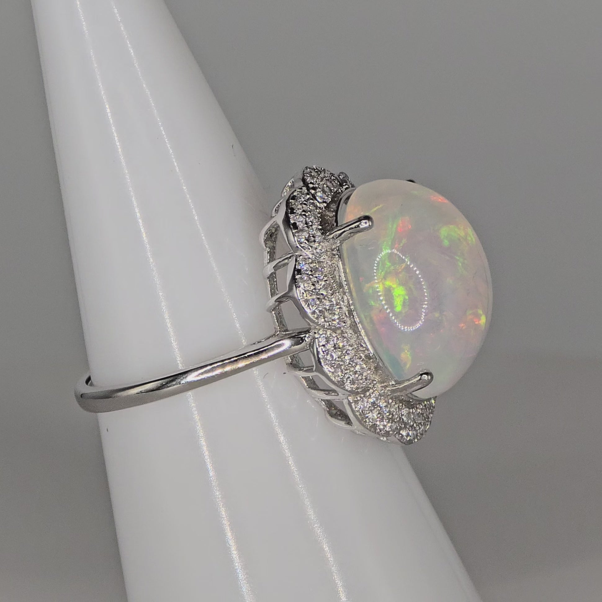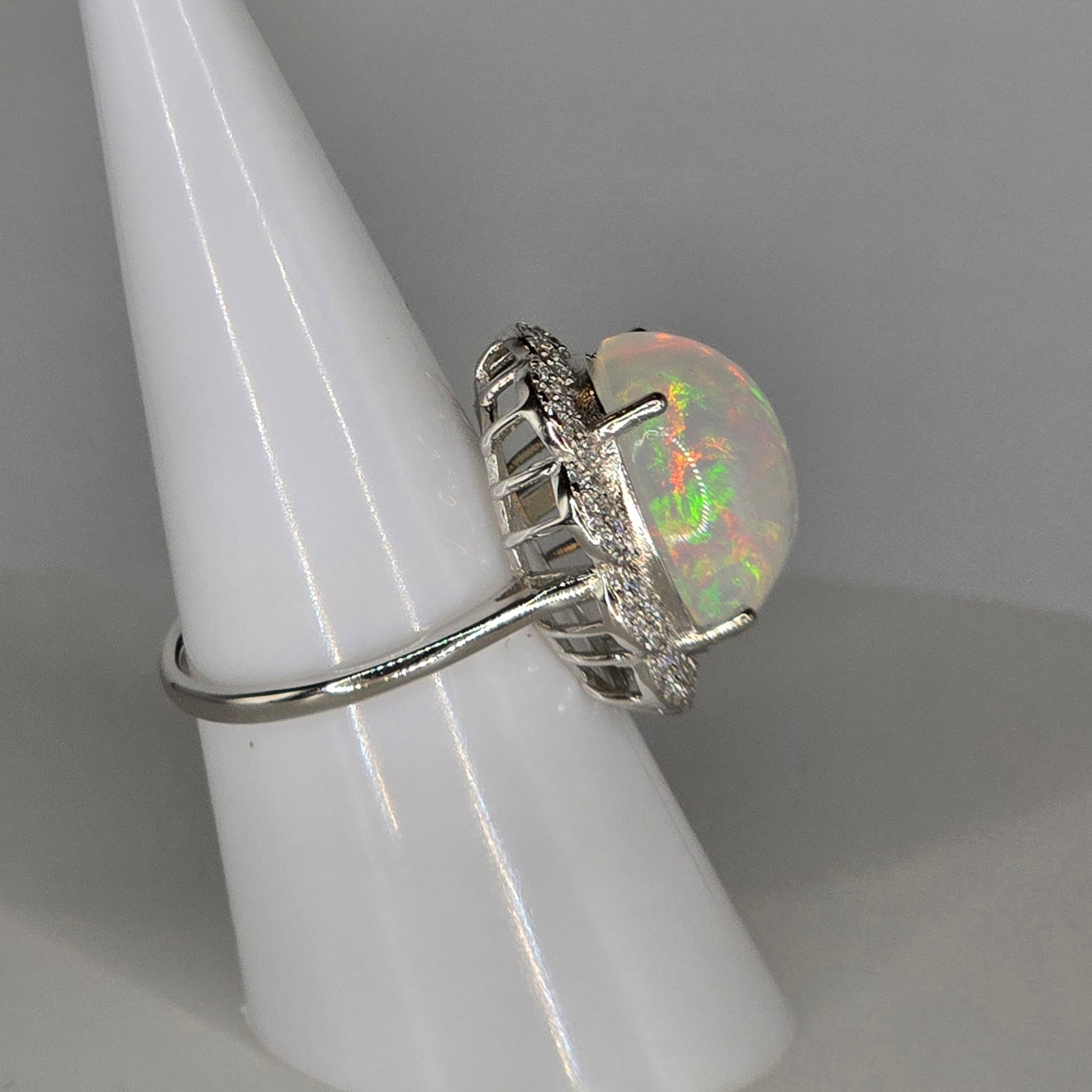Introducing Aurora Bloom—a luminous opal ring that catches the light like morning dew kissed by stardust. Surrounded by a delicate CZ halo and set in silver, this ring glows with ethereal fire, reflecting hues of pink, orange, and green in every flicker. Adjustable and mesmerizing, it's perfect for moonlit dinners, cosmic dreams, or everyday elegance.