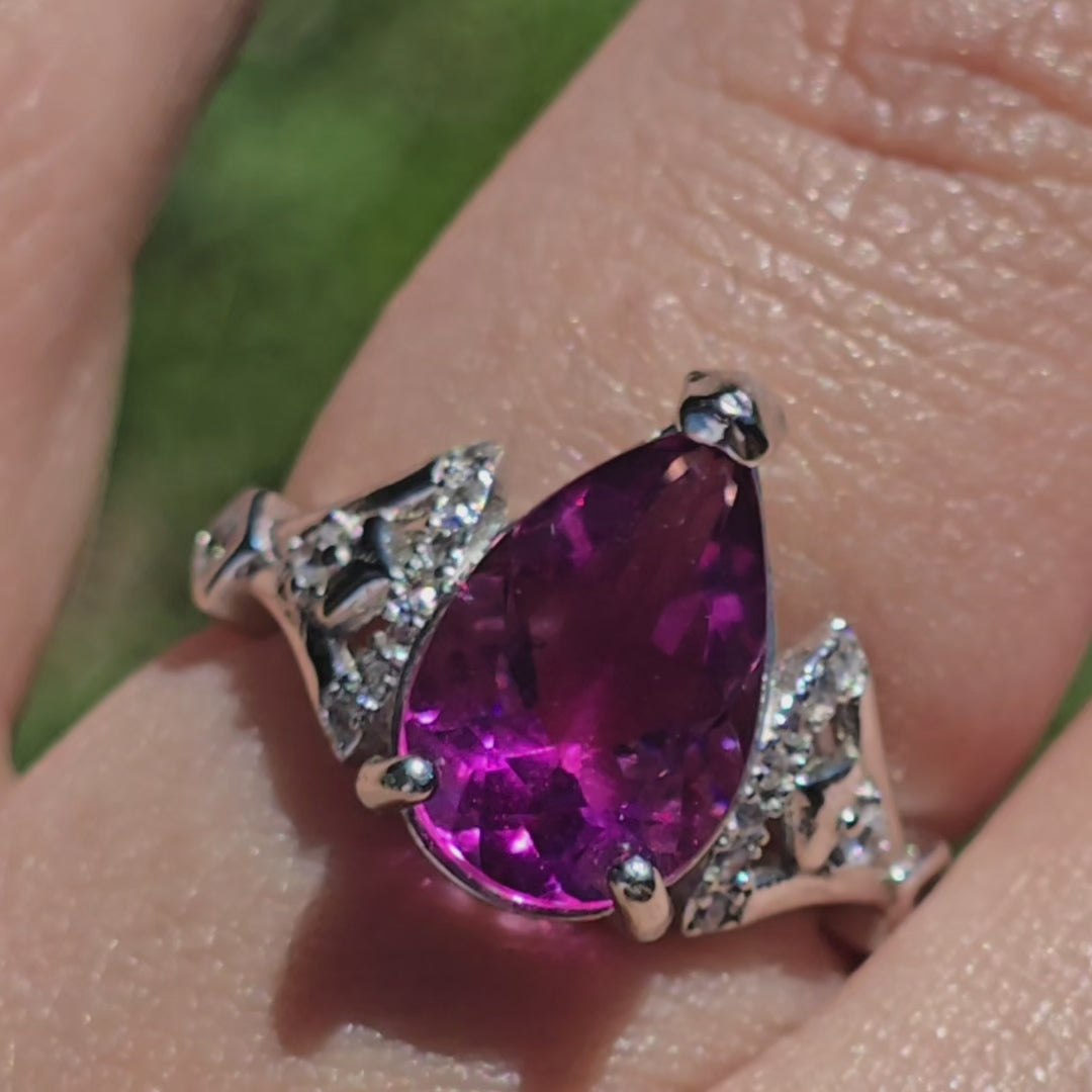 Unleash your inner fire with Pink Flame—a bold and captivating ring featuring a teardrop-cut Brazil pink fluorite, surrounded by CZ sparkle and set in shining silver. This adjustable piece is made for the muse who leads with heart, heat, and head-turning beauty.